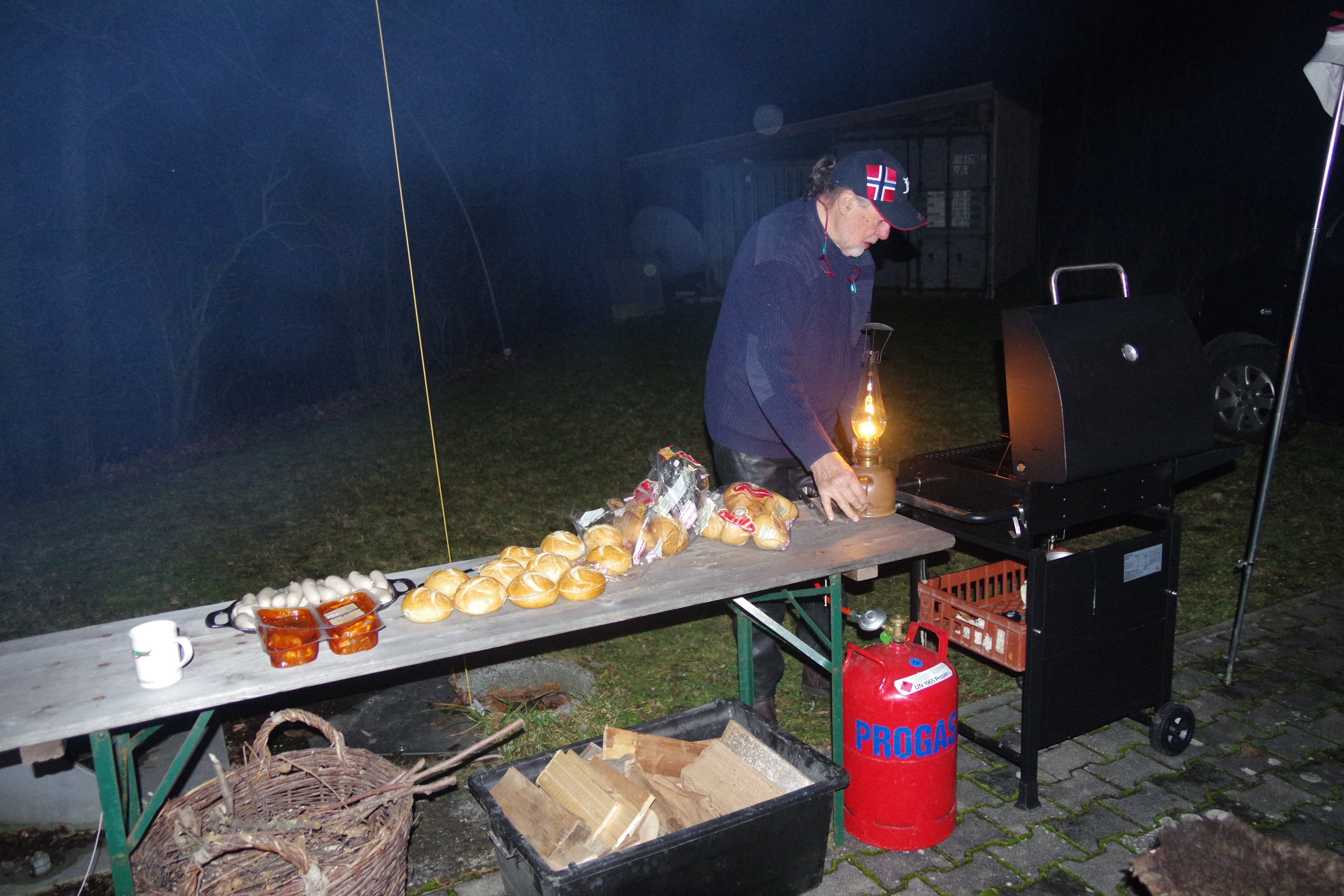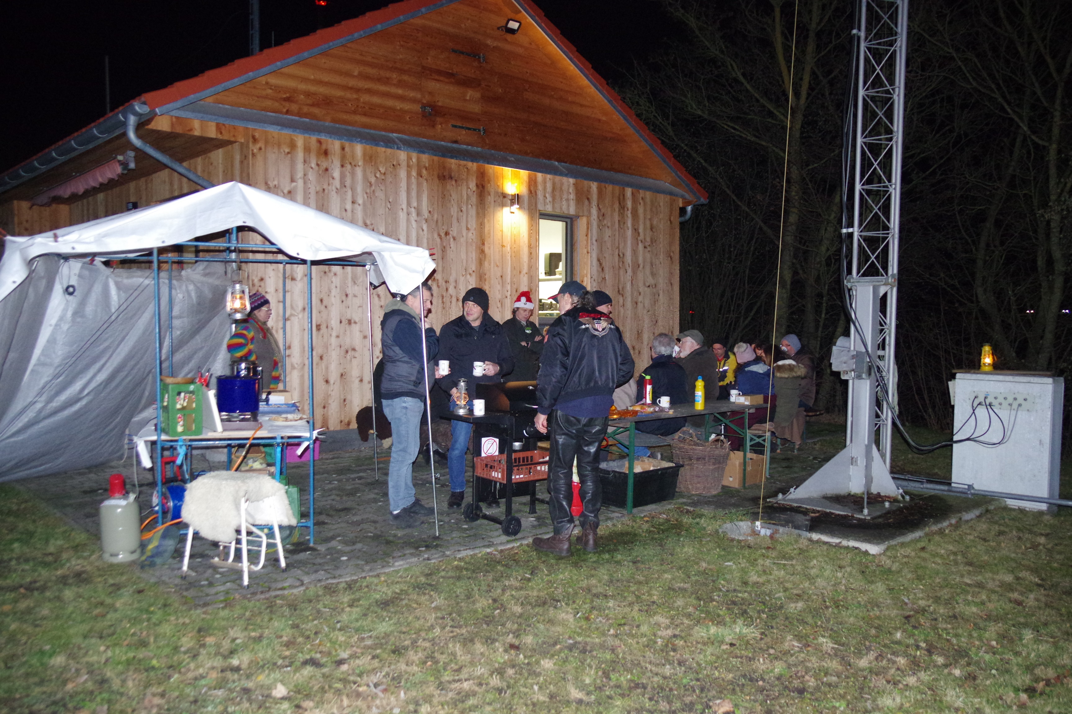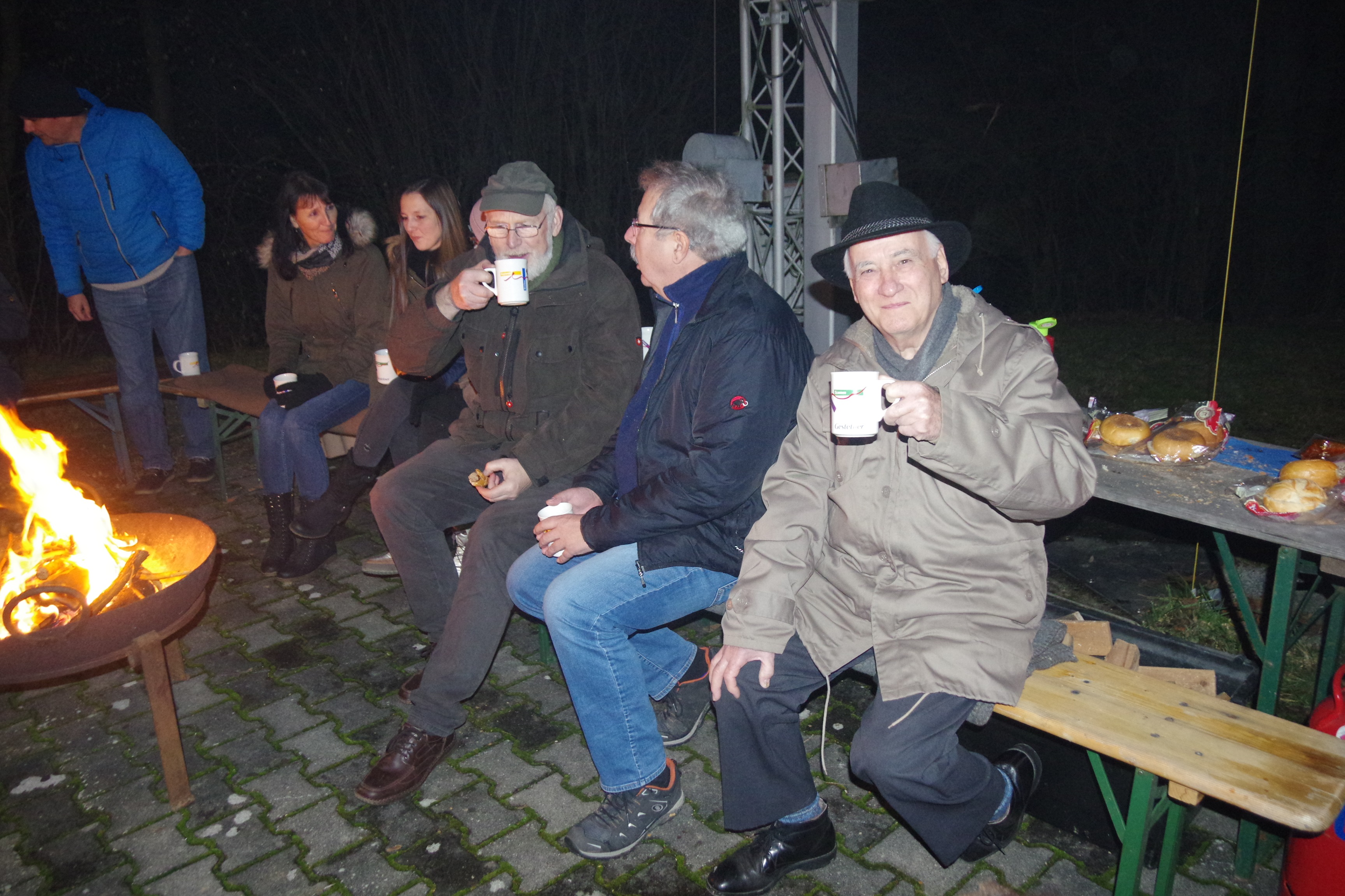 Trotz des tagsüber teilweise regnerischen und vor allem stürmischen Wetters kamen Samstag, den 14.12. doch 30 Gäste zur Weihnachtsfeier am Clubheim zusammen. Die Arbeit der Organisatoren hatte sich trotz der nachmittags stürmischen Wetterverhältnisse gelohnt.  Auch wenn aus Sicherheitsgründen, wegen des Windes, die Fackeln nicht angezündet wurden, waren alle Besucher in Feierlaune und genossen die mitgebrachten Plätzchen und Stollen, sowie Günters Grillspezialitäten, als auch Elisas selbstgemachten alkoholfreien Punsch. Nachdem der Wind dann doch deutlich abgeflaut hatte, konnte wenigstens die Feuerschale angezündet werden, sodass sich die Gäste nicht nur innerlich mit Punsch und Glühwein aufwärmen konnten, sondern auch äußerlich am Feuer. So konnte man es bei netten Gesprächen bis in die späten Abendstunden locker aushalten.